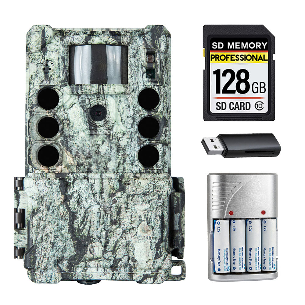 About Bushnell Core S-4K No-Glow Trail Camera (Camo) + 128GB + Batteries w/ Charger + Card Reader