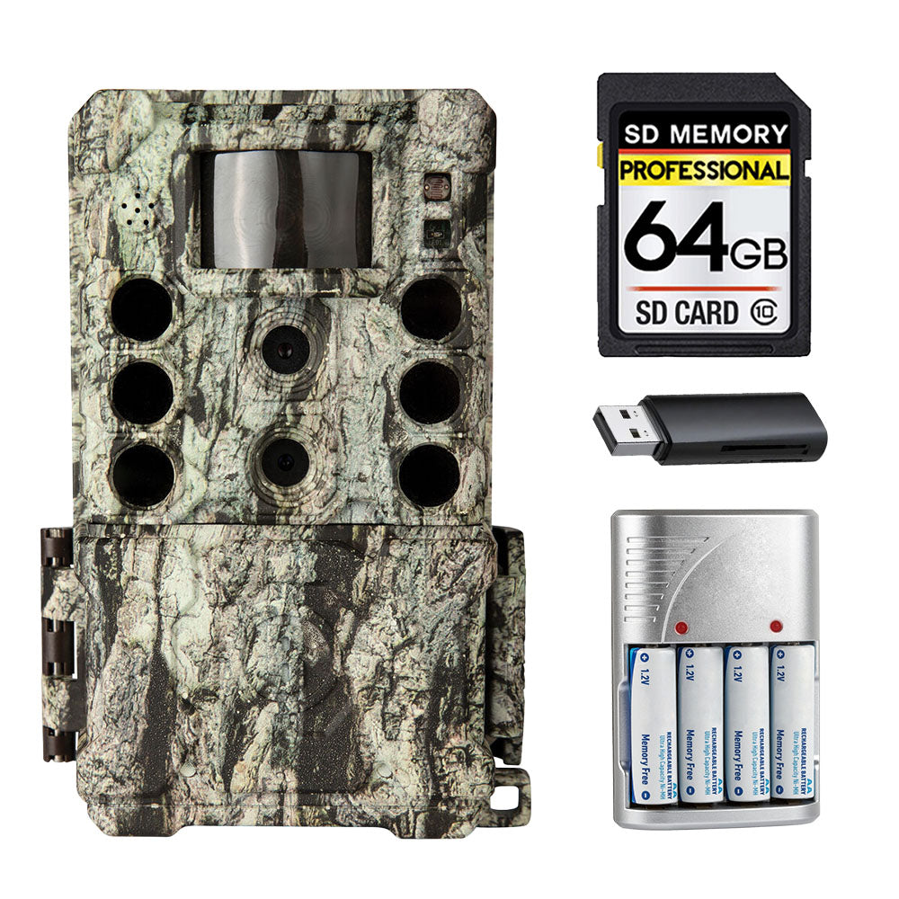 About Bushnell Core DS-4K No-Glow Trail Camera (Camo) + 64GB + Batteries w/ Charger + Card Reader