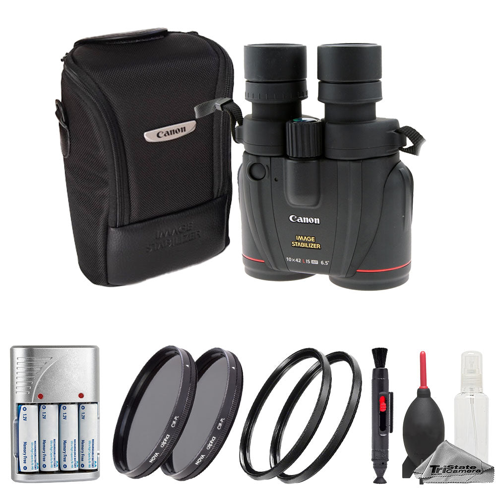 Canon 10x42 L IS WP Image Stabilized Binocular + Batteries w/ Rapid Charger + Circular Polarizer Filter Kit Specifications