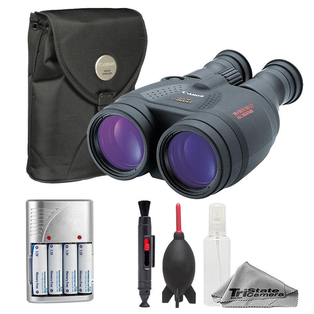 Canon 18x50 IS Image Stabilized Binocular + Batteries w/ Rapid Charger + Cleaning Kit