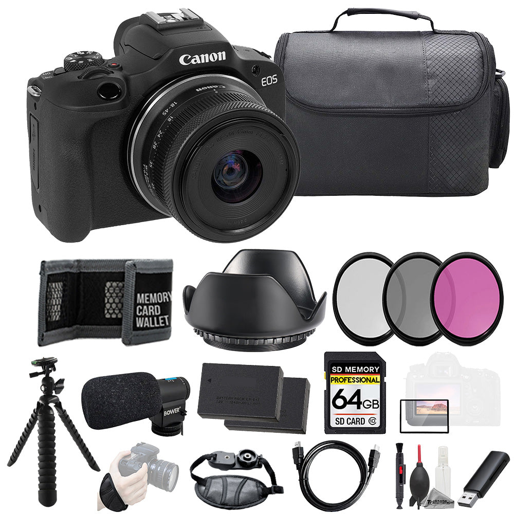 About Canon EOS R100 with 18-45mm Lens + Mic +64GB +Ext Bat+3 PC Filter- Kit