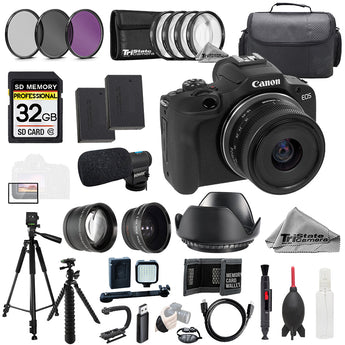 About Canon EOS R100 with 18-45mm Lens + Mic+32GB +9 PC Filtr-MEGA Kit