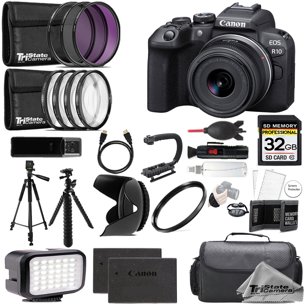 Canon EOS R10 Mirrorless Camera with 18-45mm Lens + 32GB + Extra Battery+ 9 PC Filter- ULTIMATE Kit
