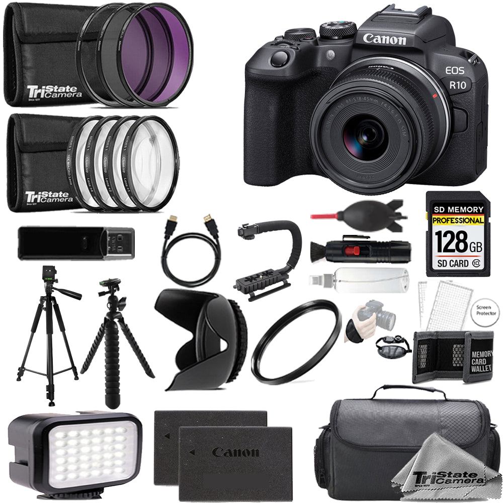 Canon EOS R10 Mirrorless Camera with 18-45mm Lens + 128GB + Extra Battery+ 9 PC Filter- ULTIMATE Kit