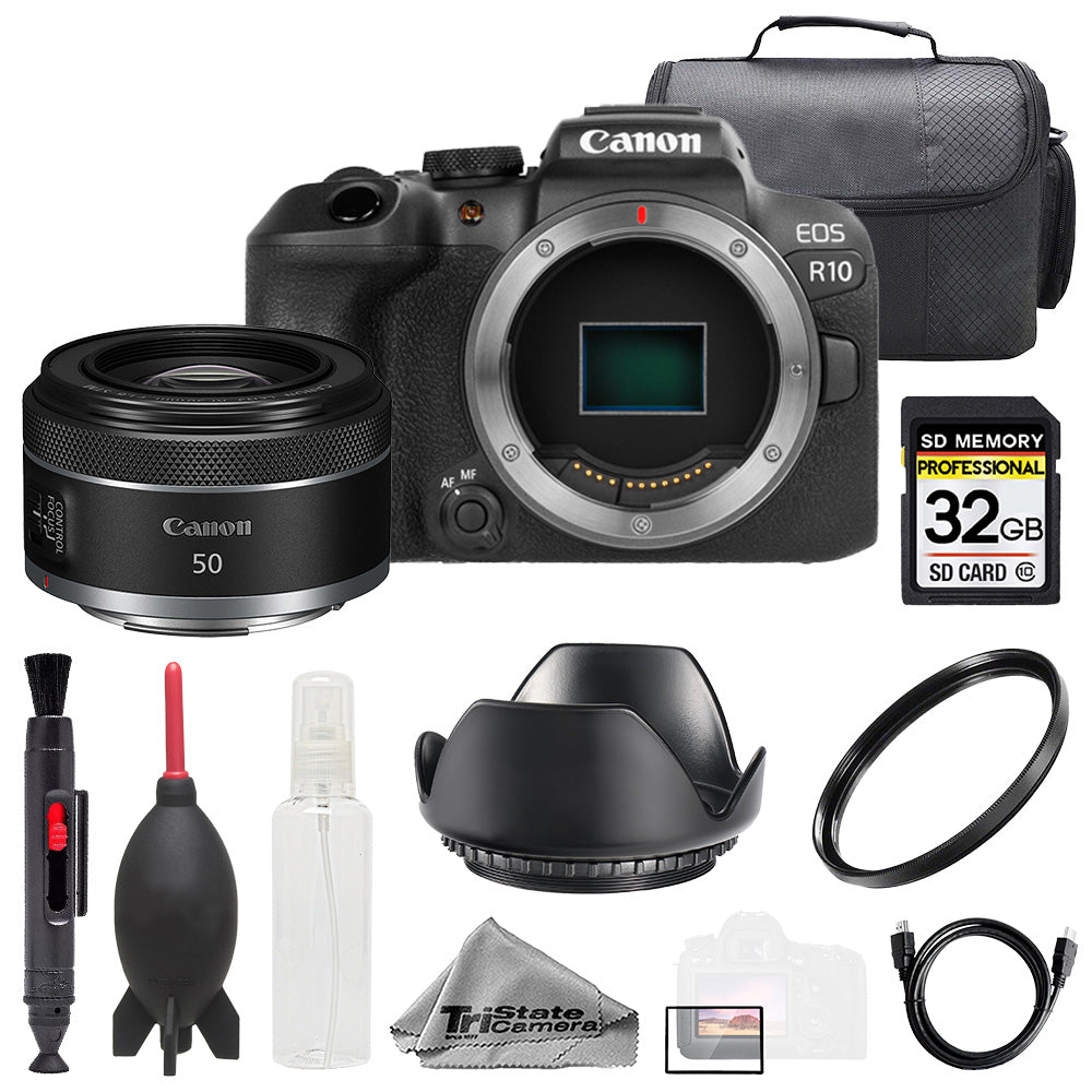About Canon EOS R10 + RF 50mm f/1.8 STM Lens +32GB + Bag+ UV Filter- Basic Kit