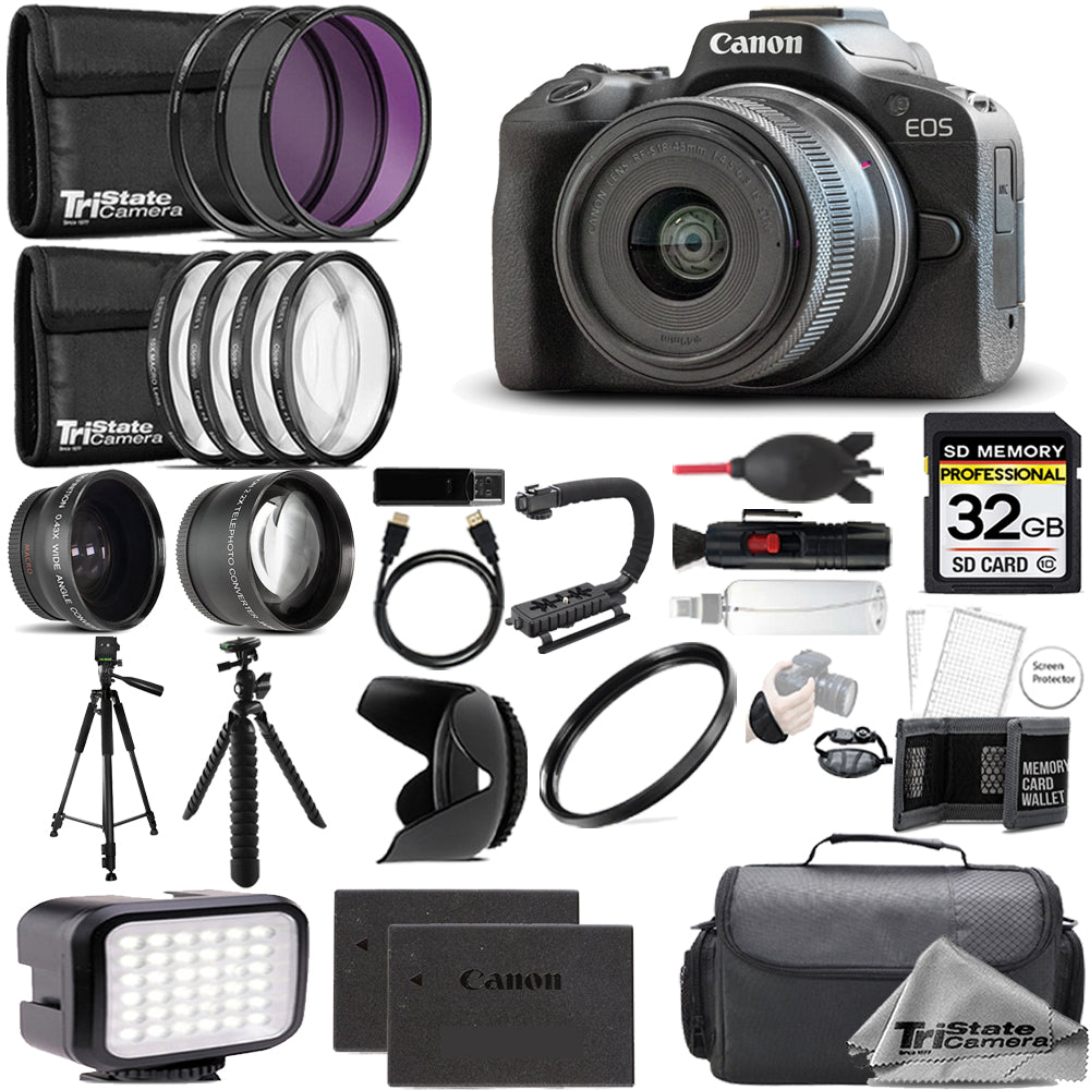 Canon EOS R50 Mirrorless Camera with 18-45mm Lens (Black) + 32GB + Extra Battery+ 9 PC Filter- ULTIMATE Kit