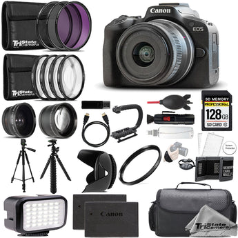 Canon EOS R50 Mirrorless Camera with 18-45mm Lens (Black) + 128GB + Extra Battery+ 9 PC Filter- ULTIMATE Kit