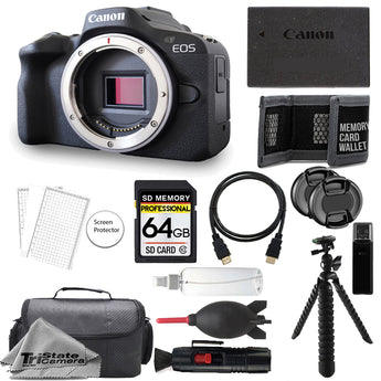 Canon EOS R50 (Body) + 64GB + Extra Battery+ Tripod- Accessory Kit