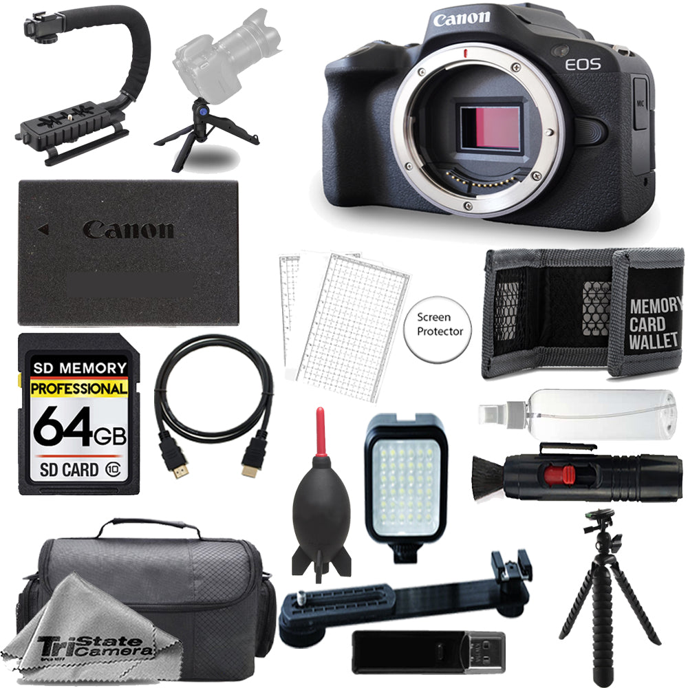 Canon EOS R50 (Body) + 64GB + Extra Battery+ LED Flash- ULTIMATE Kit