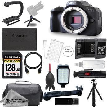 Canon EOS R50 (Body) + 128GB + Extra Battery+ LED Flash- ULTIMATE Kit