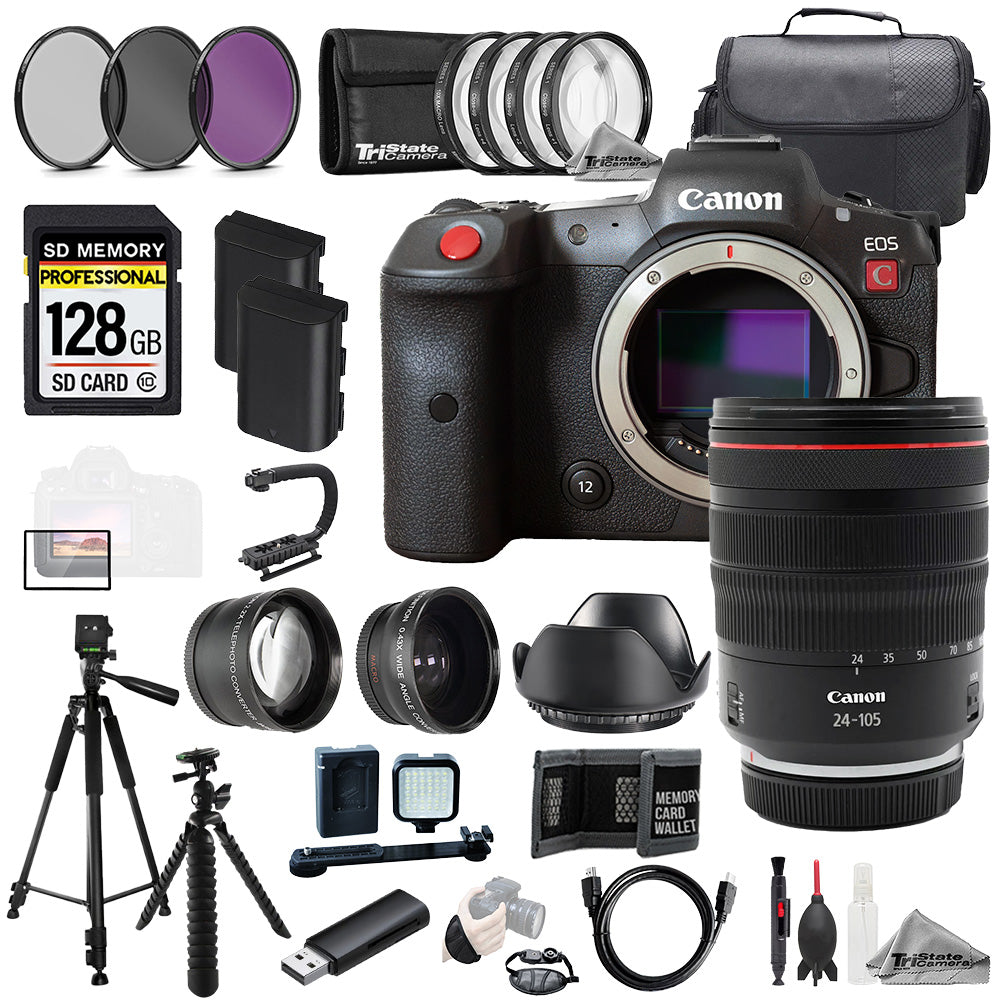 About Canon EOS R5 C Camera + 24-105mm STM Lens +128GB +Ext Bat+ 9 PC Filter MEGA Kit