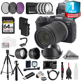 About Canon EOS R7 Camera w/ RF-S 18-150mm Lens+1Yr Warranty+64GB +Ext Bat-MEGA Kit