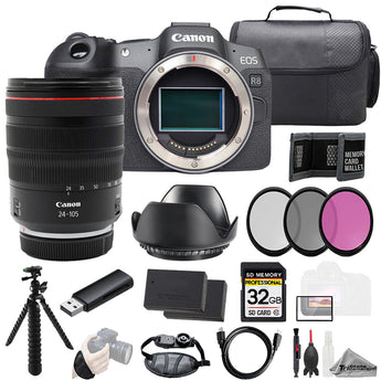 About Canon EOS R8 + RF 24-105mm f/4L IS USM Lens +32GB + Ext Bat+ 3 PC Filter- Kit