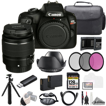 About Canon EOS Rebel T100 Camera + 18-55mm DC III Lens +128GB + Ext Bat+ 3 PC Filter- Kit