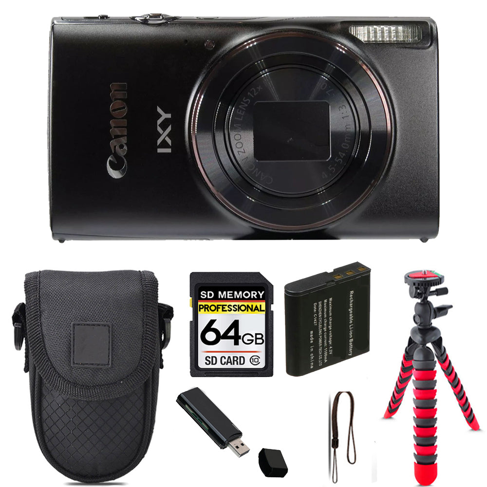 Canon PowerShot IXY 650 Digital Camera (Black) + Tripod + Case - 64GB Kit