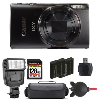 Canon PowerShot IXY 650 Digital Camera (Black) + Extra Battery + Flash - 128GB Kit