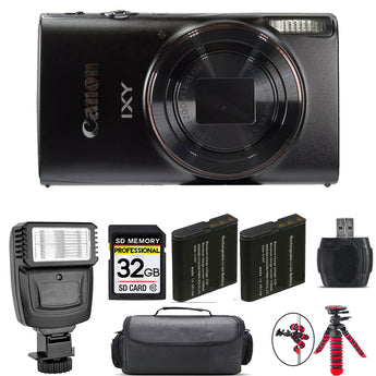Canon PowerShot IXY 650 Digital Camera (Black) + Extra Battery + Flash - 32GB Kit