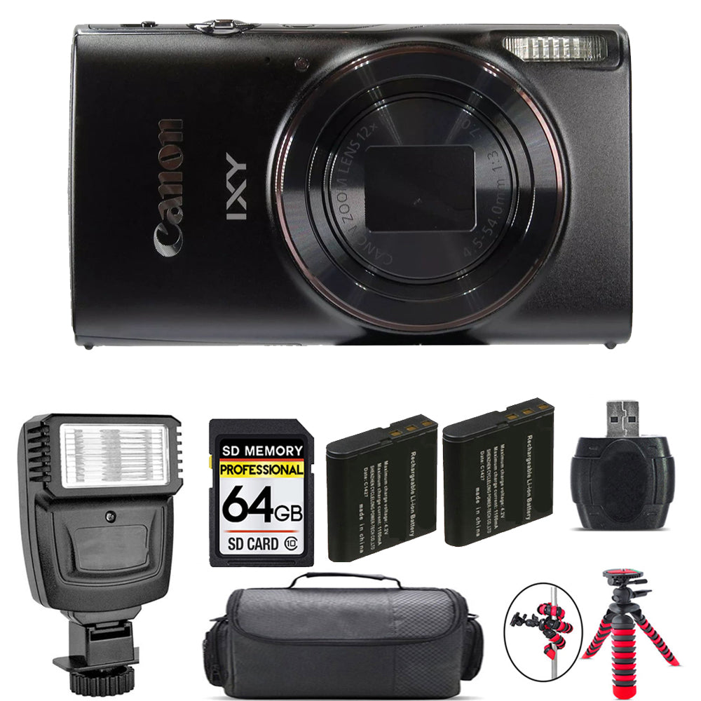 Canon PowerShot IXY 650 Digital Camera (Black) + Extra Battery + Flash - 64GB Kit