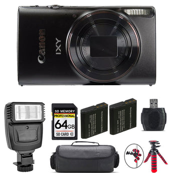 About Canon PowerShot IXY 650 Digital Camera (Black) + Extra Battery + Flash - 64GB Kit