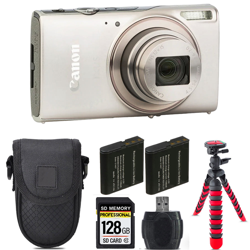 Canon PowerShot IXUS 285 HS Digital Camera (Silver) + Extra Battery +Tripod + Case -128GB Kit