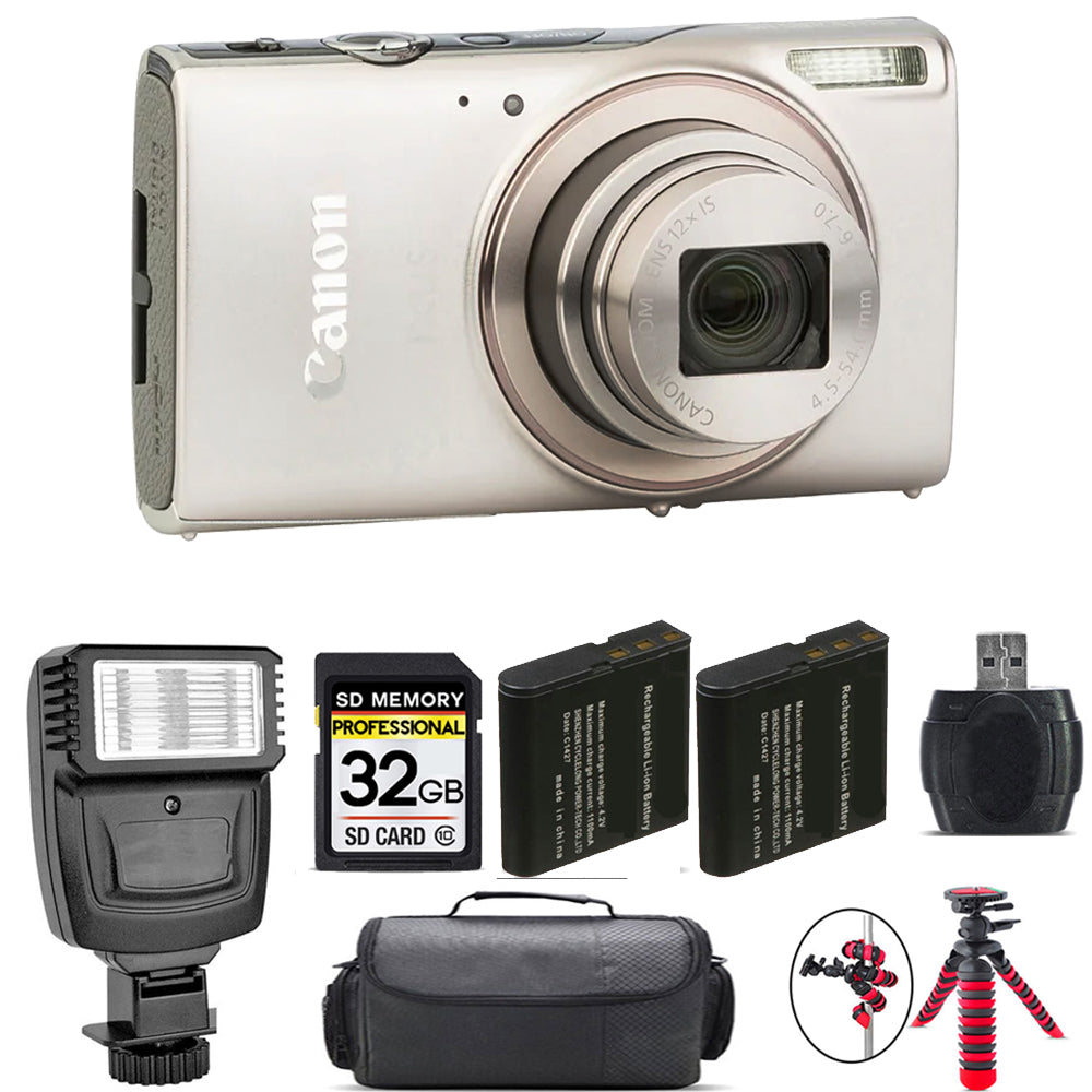 Canon PowerShot IXUS 285 HS Digital Camera (Silver) + Extra Battery + Flash - 32GB Kit