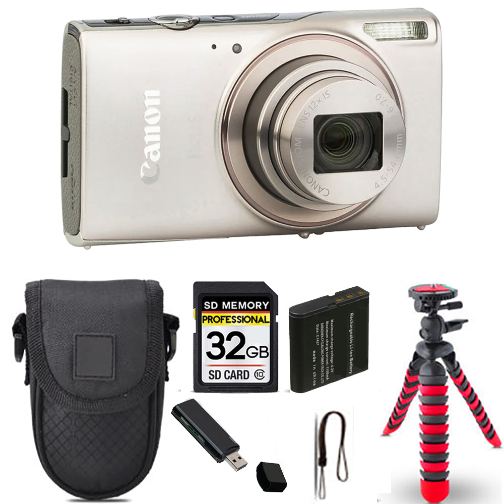 Canon PowerShot IXUS 285 HS Digital Camera (Silver) + Spider Tripod + Case - 32GB Kit