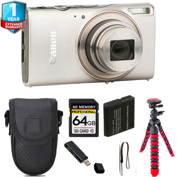 Canon PowerShot IXUS 285 HS Digital Camera (Silver) + Tripod + 1 Yr Warranty - 64GB Kit
