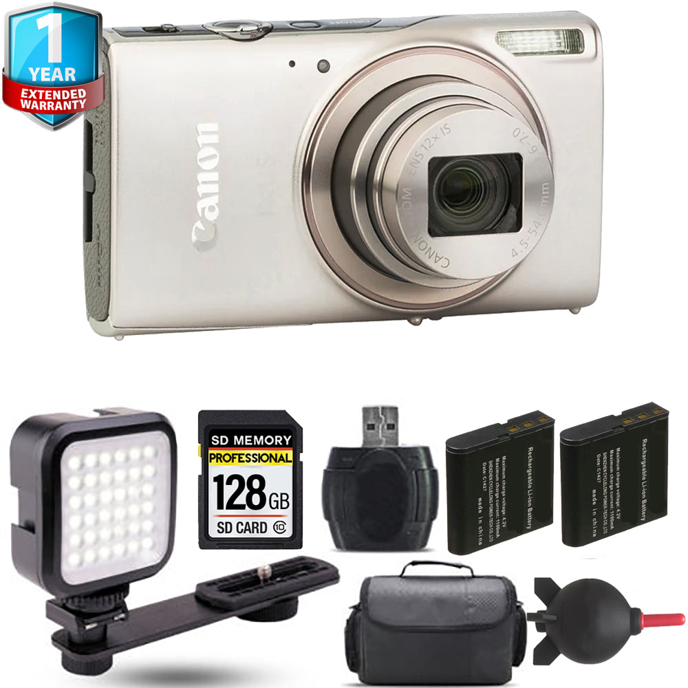 Canon PowerShot IXUS 285 HS Digital Camera (Silver) + Extra Battery + 1 Yr Warranty - 128GB Kit