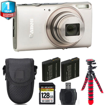 Canon PowerShot IXUS 285 HS Digital Camera (Silver) + Extra Battery +1 Yr Warranty + Case -128GB