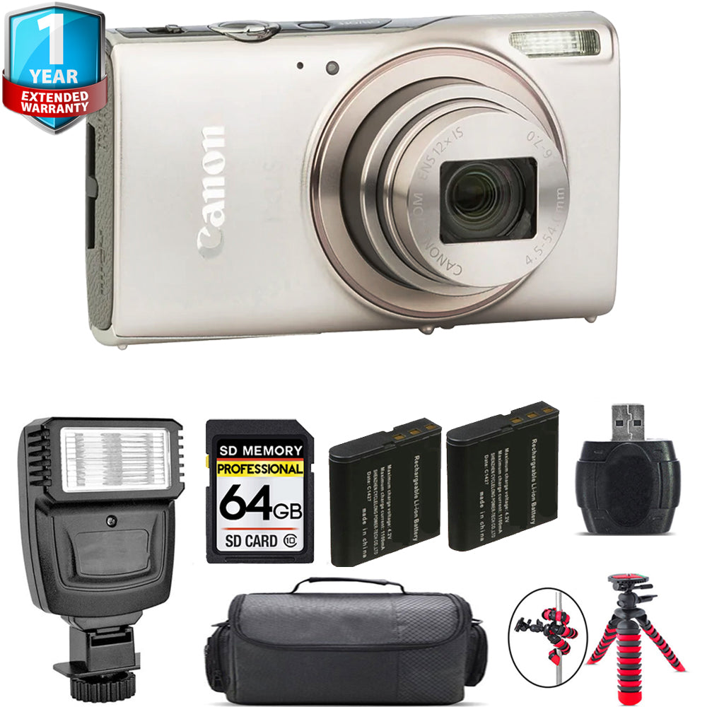Canon PowerShot IXUS 285 HS Digital Camera (Silver) + 1 Yr Warranty + Flash - 64GB Kit