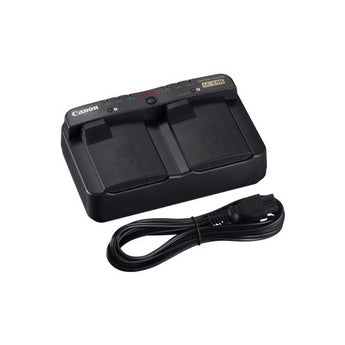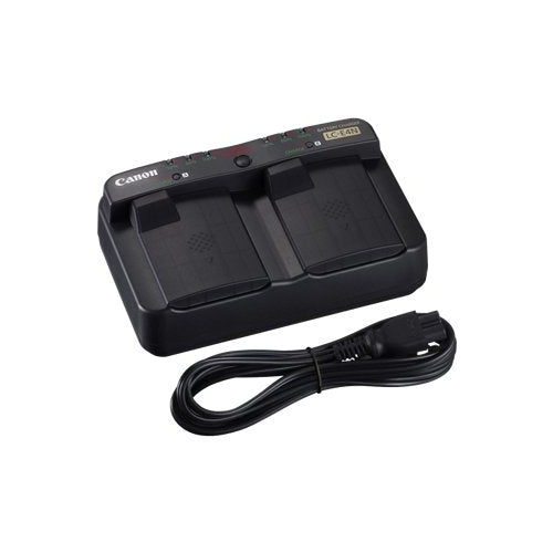 The LC-E4N Battery Charger from Canon will charge two separate LP-E4 or LP-E4N battery packs--at a rate of 120-130 minutes per battery. The charger plugs directly into AC outlets, and includes a CB-570 cable adapter which can be plugged into a DC car socket. When in use, the charger performs battery capacity calibration so that the remaining battery level can be indicated accurately when used in the EOS-1D X camera.Compatibility: