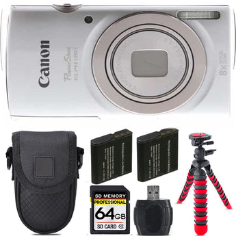 Canon PowerShot ELPH 180 Camera (Silver) + Extra Battery +Tripod + Case -64GB Kit