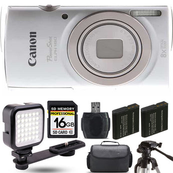 Canon PowerShot ELPH 180 Camera (Silver) + Extra Battery + LED - 16GB Kit