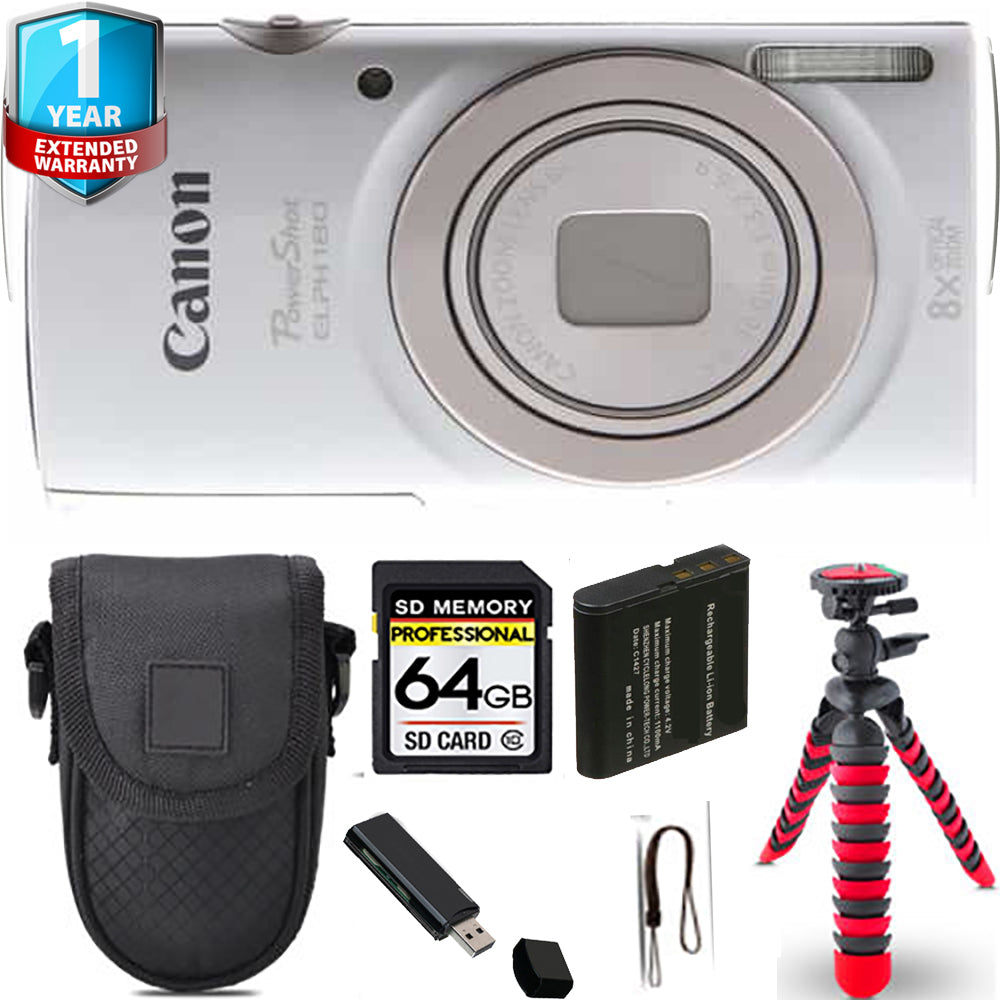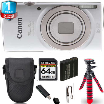 Canon PowerShot ELPH 180 Camera (Silver) + Spider Tripod + 1 Yr Warranty - 64GB