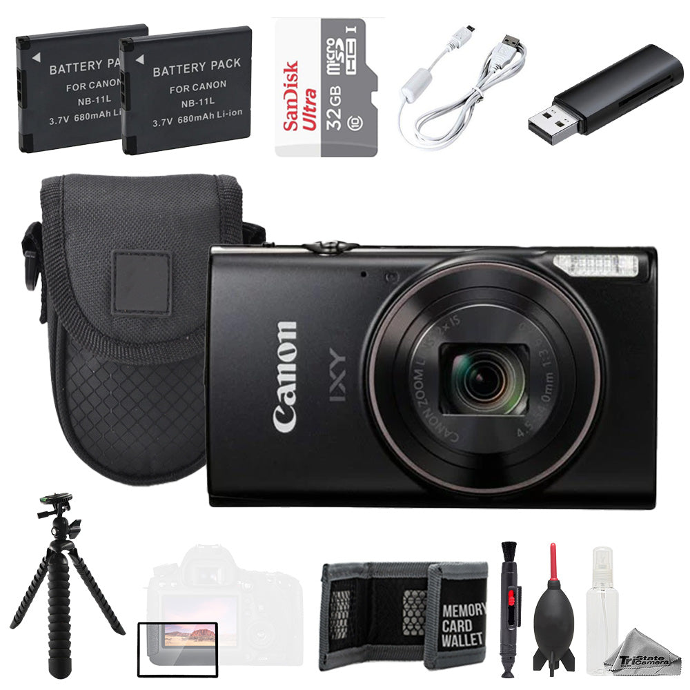 About Canon IXY 650 m (PowerShot Elph 360 HS A) Camera - Black + 32GB + Extra Battery + Tripod- Value Kit