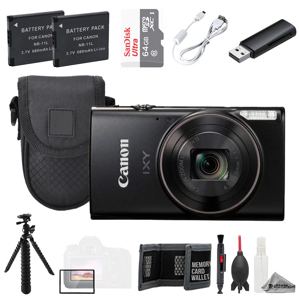 About Canon IXY 650 m (PowerShot Elph 360 HS A) Camera - Black + 64GB + Tripod + Extra Batt - Value Kit