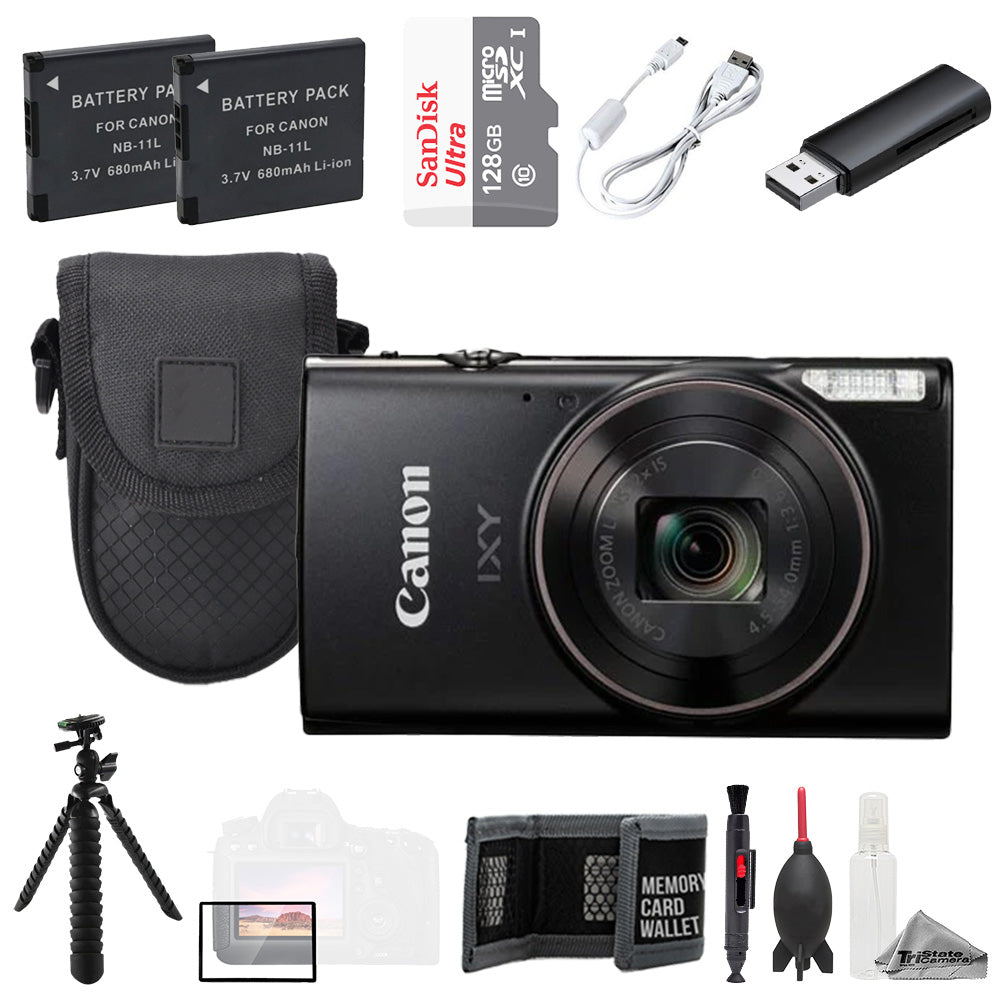About Canon IXY 650 m (PowerShot Elph 360 HS A) Camera - Black + 128GB + Tripod + Extra Batt - Value Kit