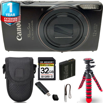 Canon PowerShot ELPH 360 Camera (Black) + Spider Tripod + Case+ 1 Yr Warranty