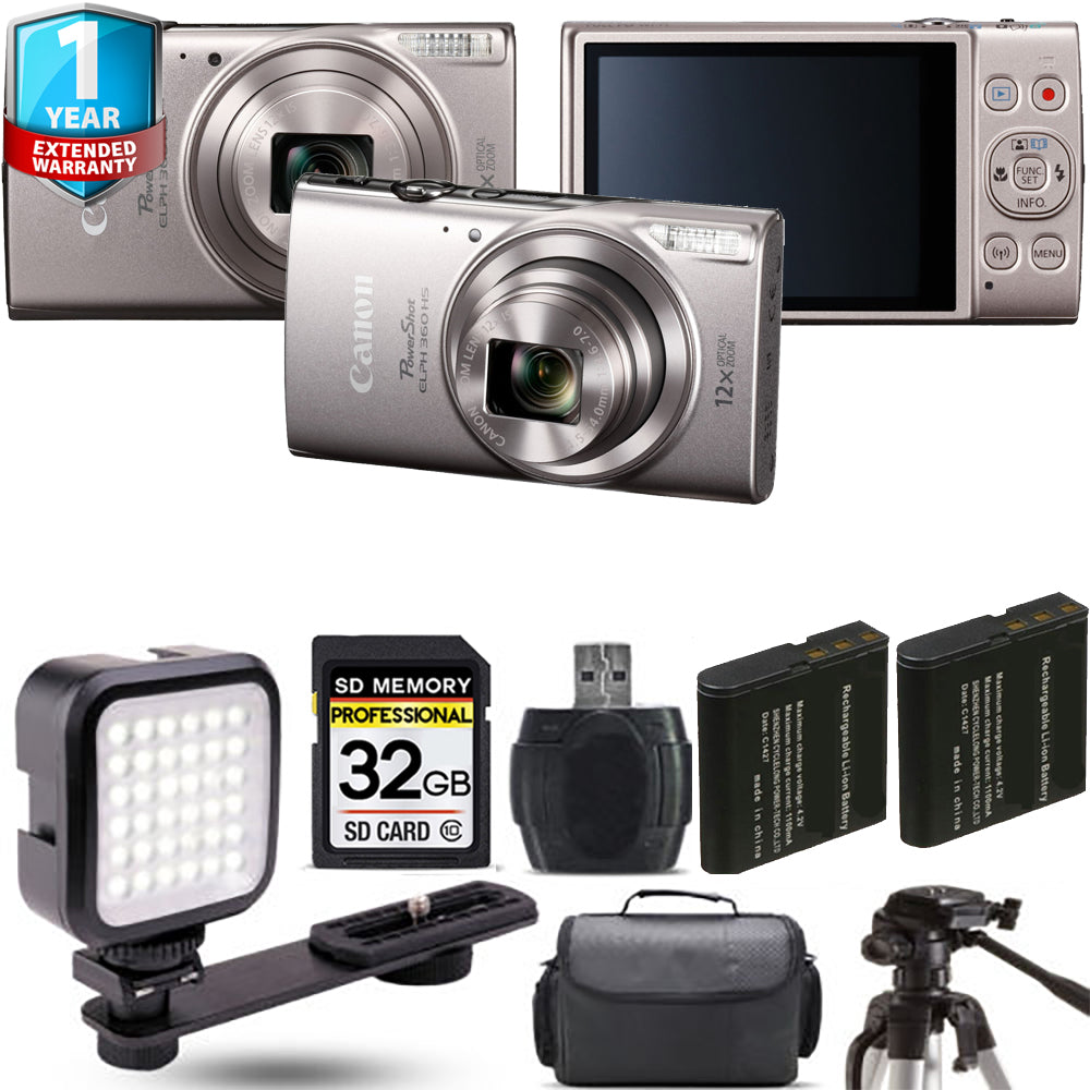 Canon PowerShot ELPH 360 Camera (Silver) + Extra Battery + LED +1 Yr Warranty