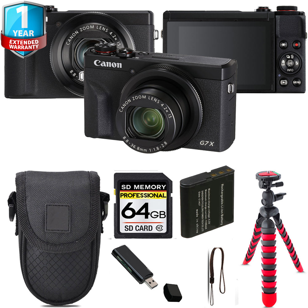Canon PowerShot G7 X Mark III Digital Camera (Black) + Tripod + 1 Yr Warranty - 64GB Kit