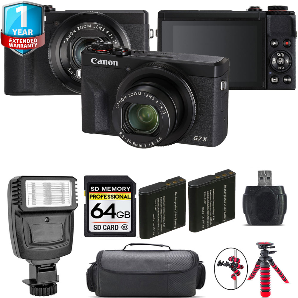 Canon PowerShot G7 X Mark III Digital Camera (Black) + 1 Yr Warranty + Flash - 64GB Kit