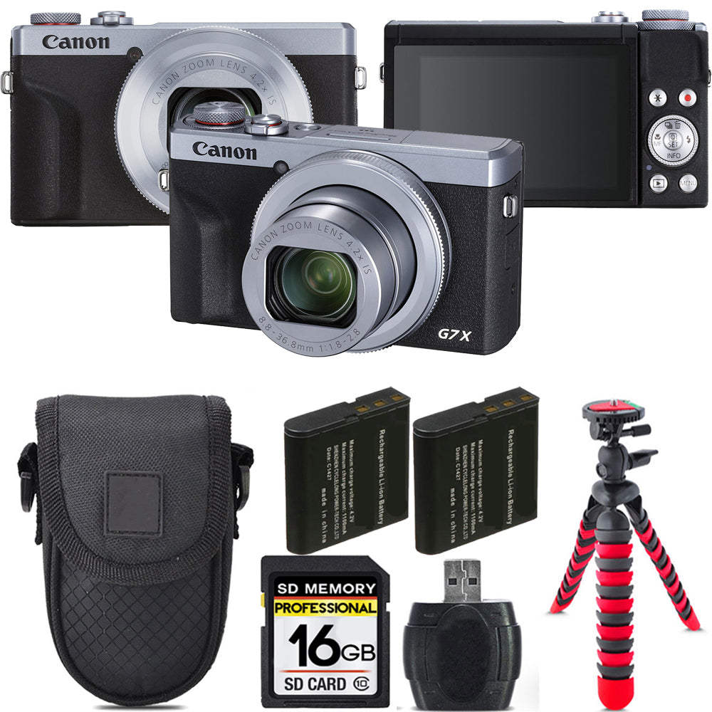 Canon PowerShot G7 X Mark III Digital Camera (Silver) + Extra Battery +Tripod + Case -16GB Kit