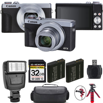 Canon PowerShot G7 X Mark III Digital Camera (Silver) + Extra Battery + Flash - 32GB Kit