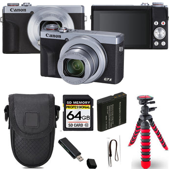 Canon PowerShot G7 X Mark III Digital Camera (Silver)+ Spider Tripod + Case - 64GB Kit