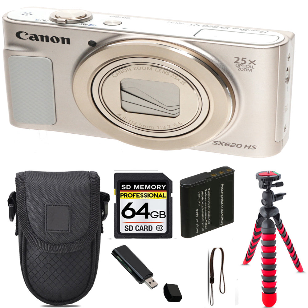 Canon PowerShot SX620 HS Digital Camera (Silver) + Tripod + Case - 64GB Kit