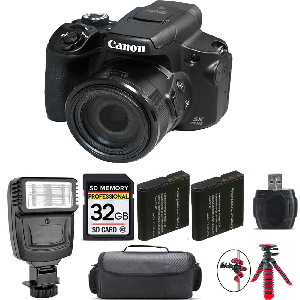 Canon PowerShot SX70 HS Digital Camera + Extra Battery + Flash - 32GB Kit