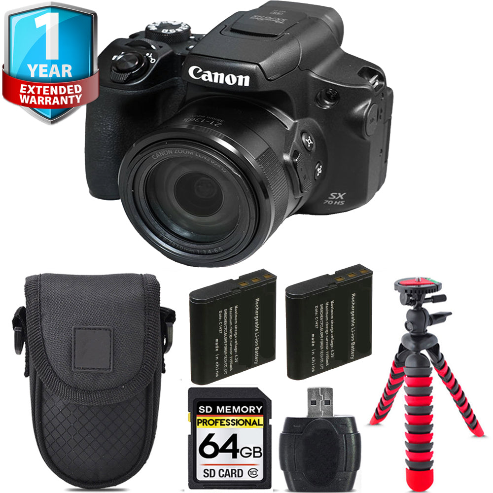 Canon PowerShot SX70 HS Digital Camera + Extra Battery +Tripod + 1 Yr Warranty -64GB Kit