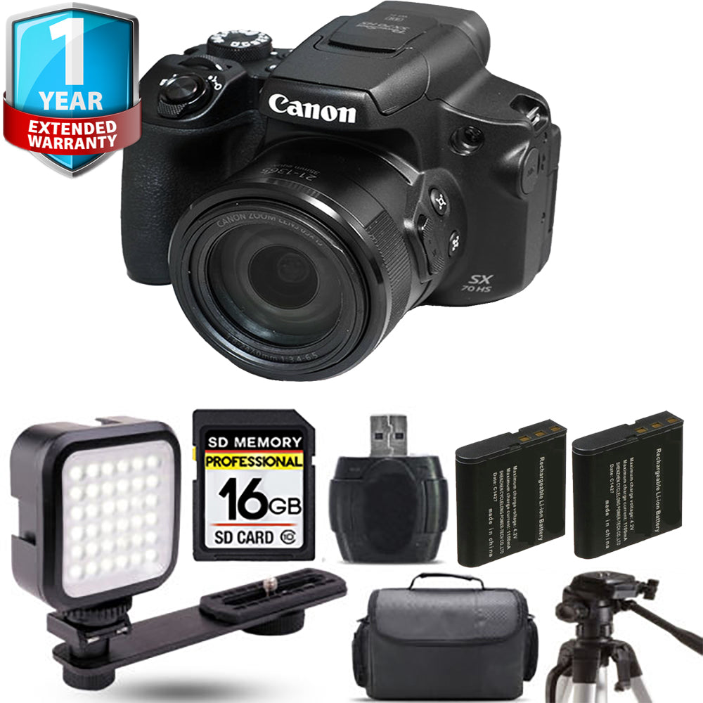 Canon PowerShot SX70 HS Digital Camera + Extra Battery + 1 Yr Warranty - 16GB Kit