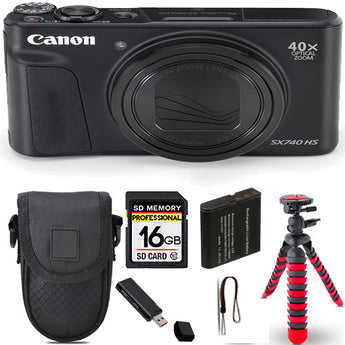 Canon PowerShot SX740 HS Digital Camera (Black)+ Spider Tripod + Case - 16GB Kit
