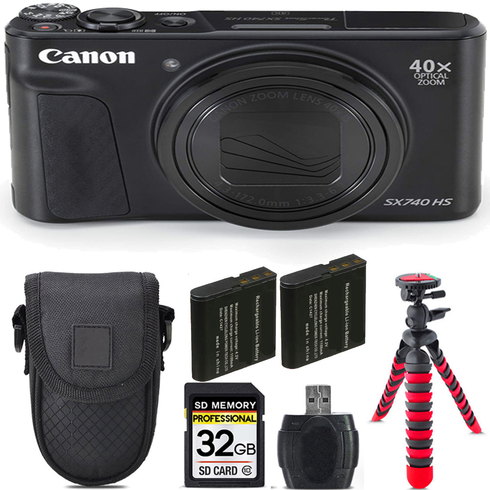Canon PowerShot SX740 HS Digital Camera (Black) + Extra Battery +Tripod + Case -32GB Kit